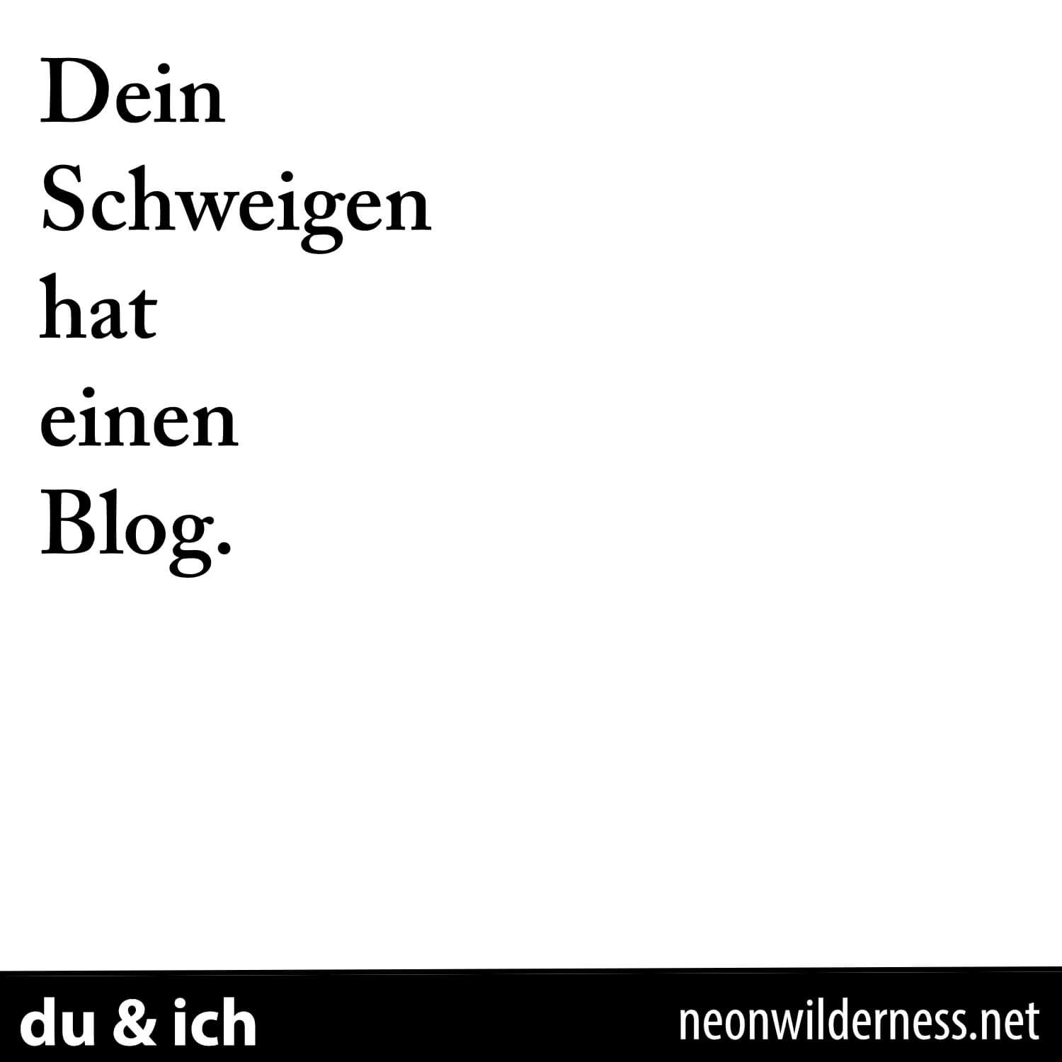 Ich lebe (recht gut), ich schreibe (vor allem für Einreichungen), ich lese (wahnsinnig viel), ich denke (nach). Nur hab ich aktuell nur wenig Kopf für diesen Blog hier. Man möge mir verzeihen. Aber nebenbei habe ich mein im letzten Jahr gestartete Projekt du & ich neu organisiert. Bisher habe ich diese quadratischen Textchen auf Tumblr, Facebook, Twitter und dem NeonWilderness-Account gepostet, nicht immer alle überall und nicht immer haben sie die Aufmerksamkeit bekommen, die ich mir gewünscht habe.